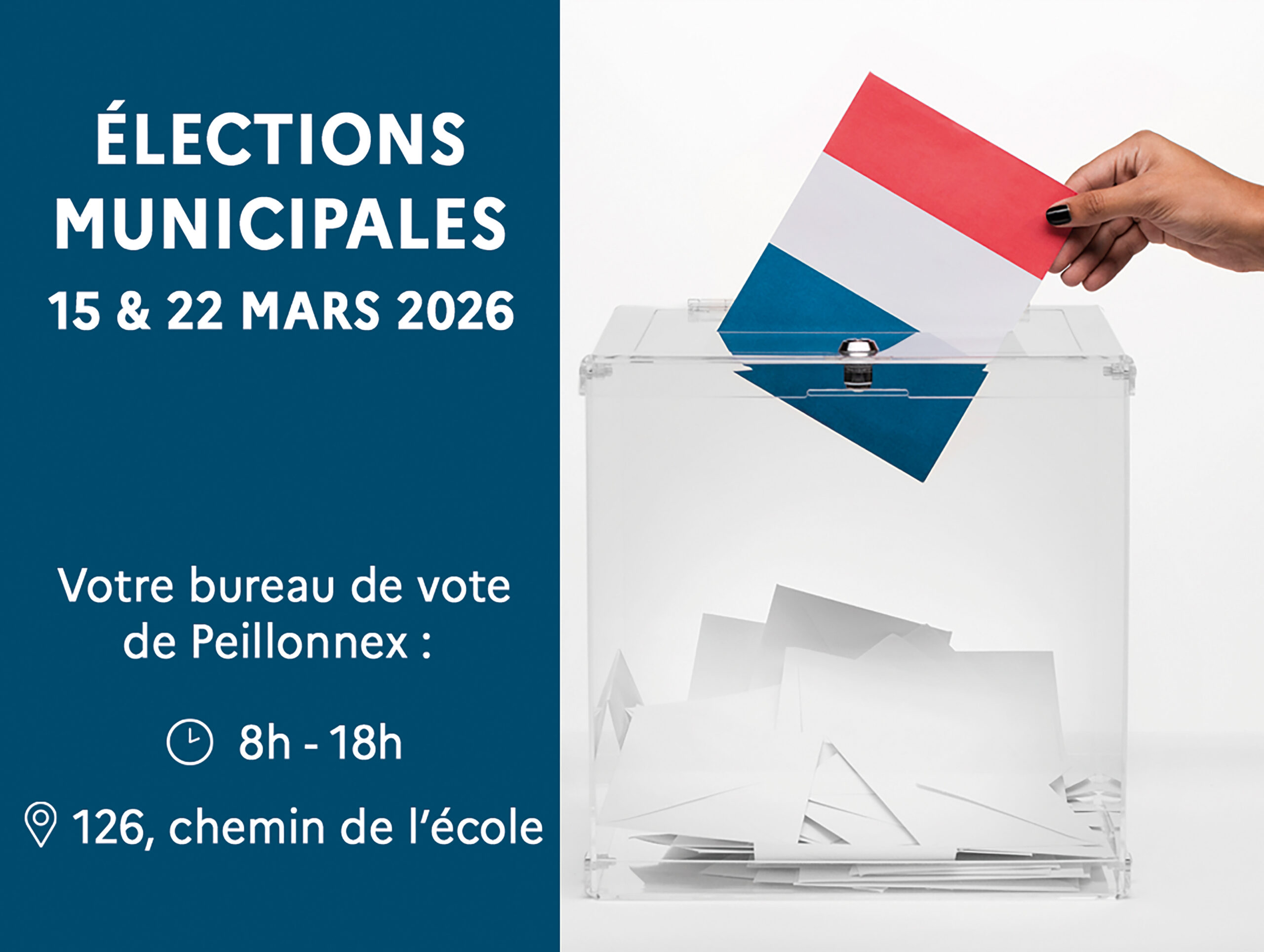 Bienvenue à Peillonnex Bienvenue à Peillonnex Bienvenue à Peillonnex Urbanisme Démarches administratives w Annuaire des associations Réservations des salles Tri et ordures ménagères Actualités Voir toutes les actualités Activités du mois de février à la MJC « Les Clarines »La MJC "Les Clarines" a mis à jour son calendrier d'animations pour le mois de février : Le lundi 9 : Atelier ...Lire plusNo results found. FERMETURE DE L’AGENCE POSTALE COMMUNALEL'agence postale communale sera fermé jusqu'à nouvel ordre Merci de vous rendre à la poste de Ville en Sallaz ...Lire plusNo results found. No results found.No results found. À vos agendas Voir tous les événements 15 mars Elections MunicipalesElections MunicipalesDate: 15 mars 2026à : 8h00 26 mars Tombola Sou des ÉcolesTombola Sou des ÉcolesDate: 26 mars 2026à : Événement sur toute la journéeLieu : Atelier communalOrganisateur : Sou des écoles 18 avril LotoLotoDate: 18 avril 2026à : Événement sur toute la journéeLieu : Salle des Fêtes de PeillonnexOrganisateur : Cheval Rouge 08 mai Commémoration 8 maiCommémoration 8 maiDate: 8 mai 2026à : Événement sur toute la journéeLieu : Monument aux mortsOrganisateur : Mairie 09 mai Vente de plantonsVente de plantonsDate: 9 mai 2026à : Événement sur toute la journéeLieu : Atelier communalOrganisateur : Sou des écoles 25 mai Fête du ChevalFête du ChevalDate: 25 mai 2026à : Événement sur toute la journéeLieu : Champ de foireOrganisateur : Comité des FêtesCharger plus
