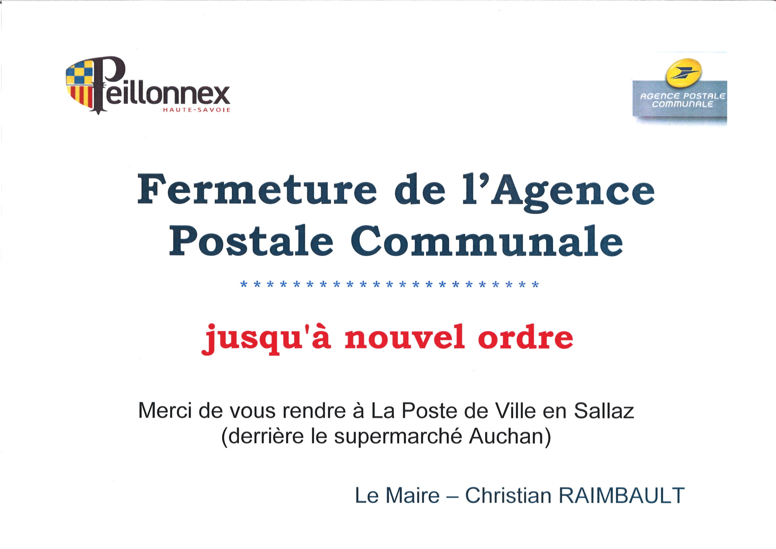 L’agence postale communale sera fermé jusqu’à nouvel ordre