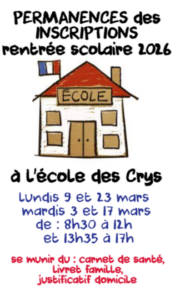 PERMANENCES DES INSCRIPTIONS RENTREE SCOLAIRE 2026 29 janvier 2026 PERMANENCES DES INSCRIPTIONS RENTREE SCOLAIRE 2026 LUNDIS 9 ET 23 MARS MARDIS 3 ET 17 MARS